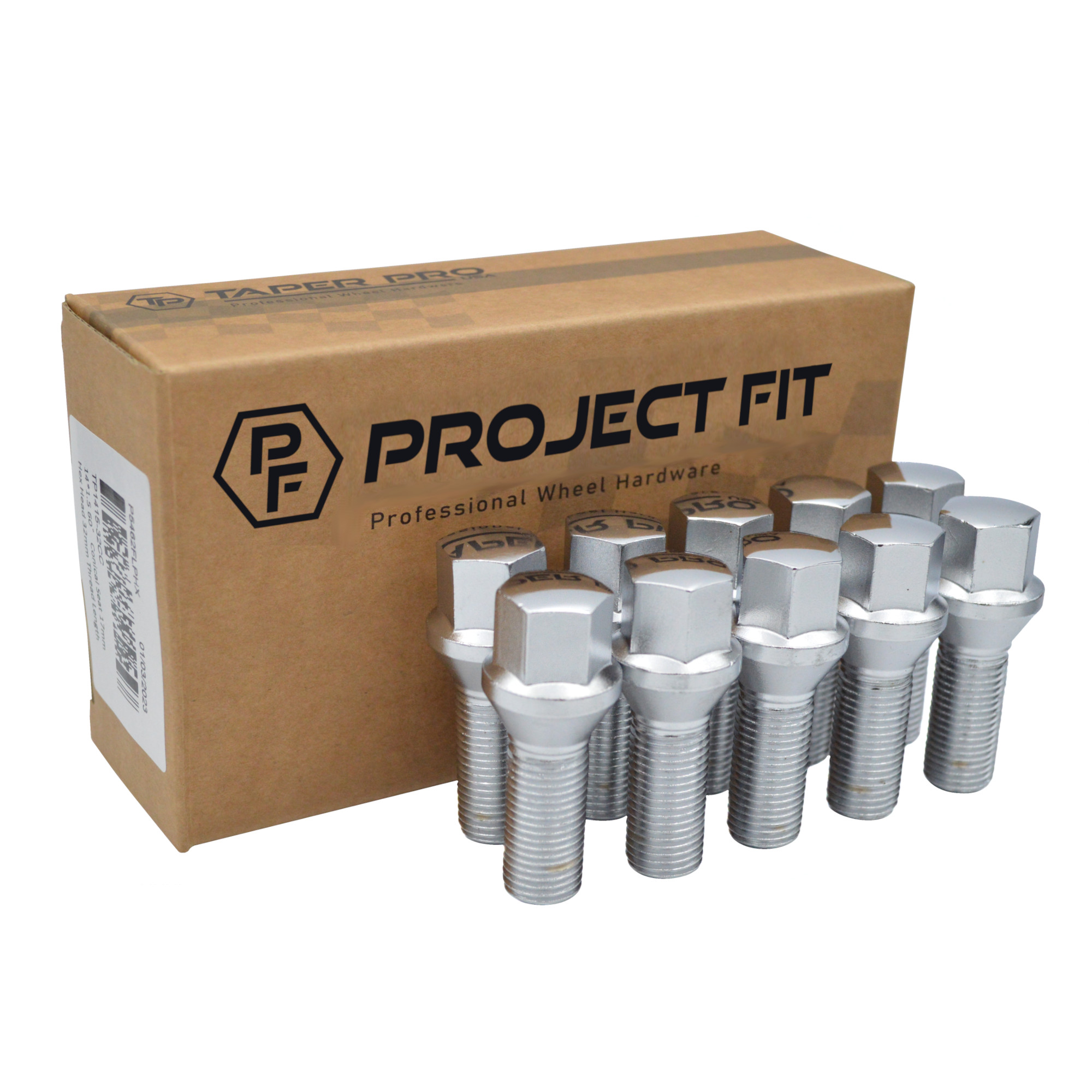 Project Fit Lug Bolts 10pcs | 14x1.5 R14 Radius Seat 17mm Hex Head 47mm Thread Length - Chrome