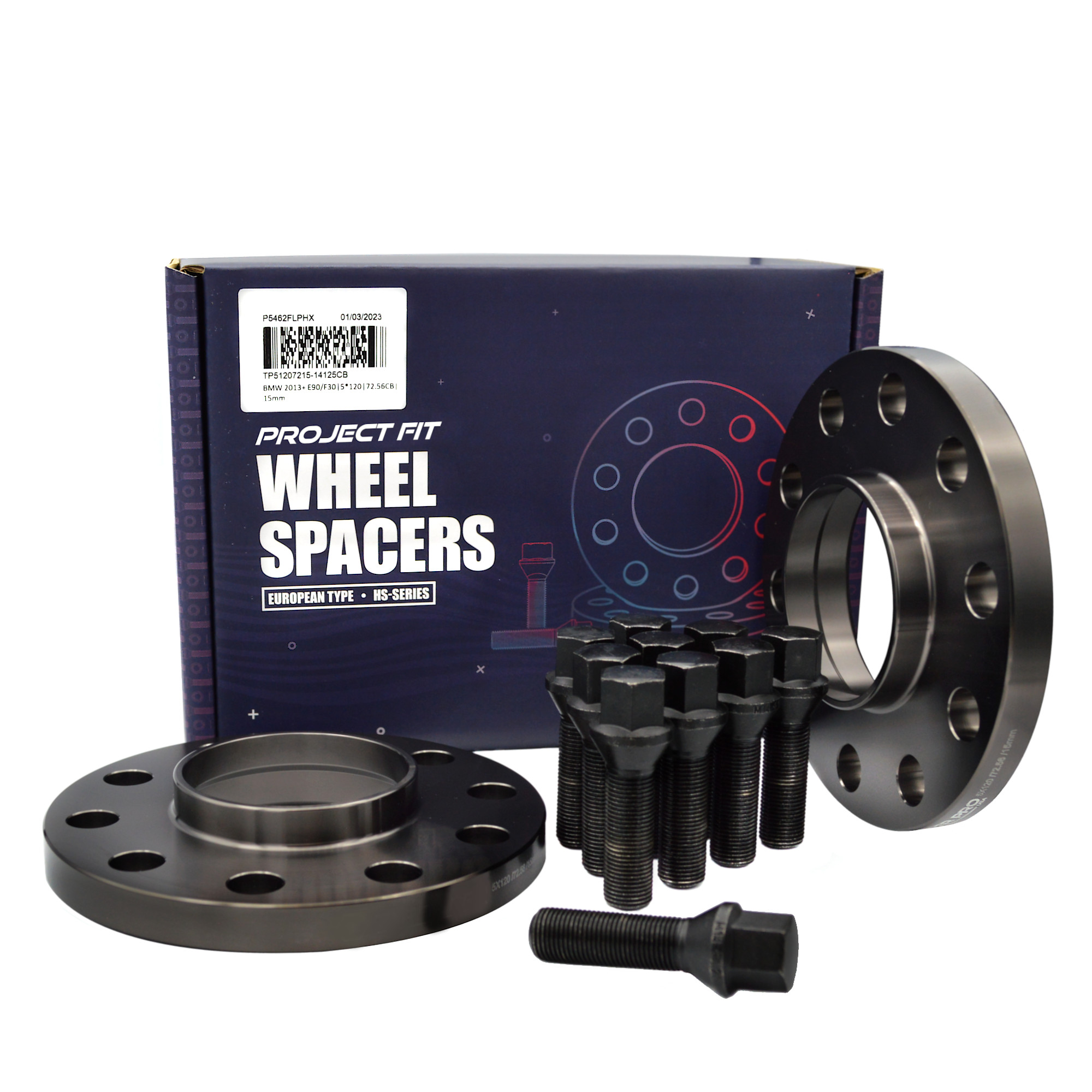 Project Fit Hub-Centric Wheel Spacers 2pc Kit with Conical Seat Lug Bolts | Fits: Audi | 5x112 | 66.56 CB | 20mm Thick